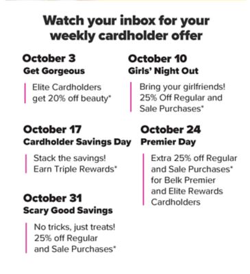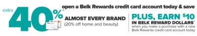 Earn up to 5% back in belk rewards. Offer applies to first day's purchases made on a new account opened. Register for online access please enter your account number and billing zip code Enroll in paperless statements and letters. Reset your password please use the primary account holder information.